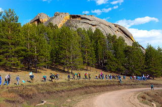 朝、専用車にてウランバートルから100キロ離れたドガナ岩へ移動します。キャンプ施設内を見学後、昼食を取ります。乗馬体験を1時間程楽しんだ後,ゲルにて宿泊します。朝食後、ドガナ岩のゆるやかな傾斜に沿ってハイキングが始まります。岩に登ってみることもできます。 |